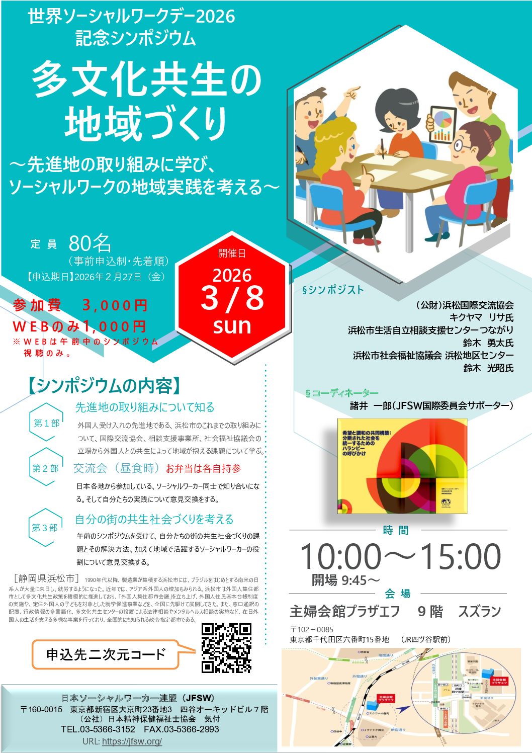 日本ソーシャルワーカー連盟(JFSW)よりシンポジウムの案内を頂きました。WEB... 続きを読む